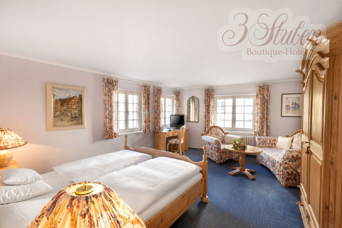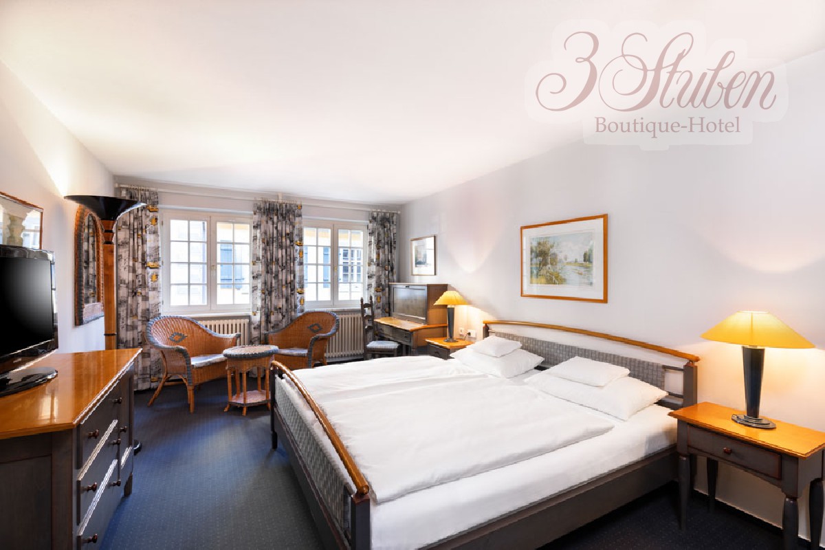 This individually designed Double Bedroom "Comfort" offers more room to relax, a large double bed, cabel TV, a writing desk and comfortable seating.