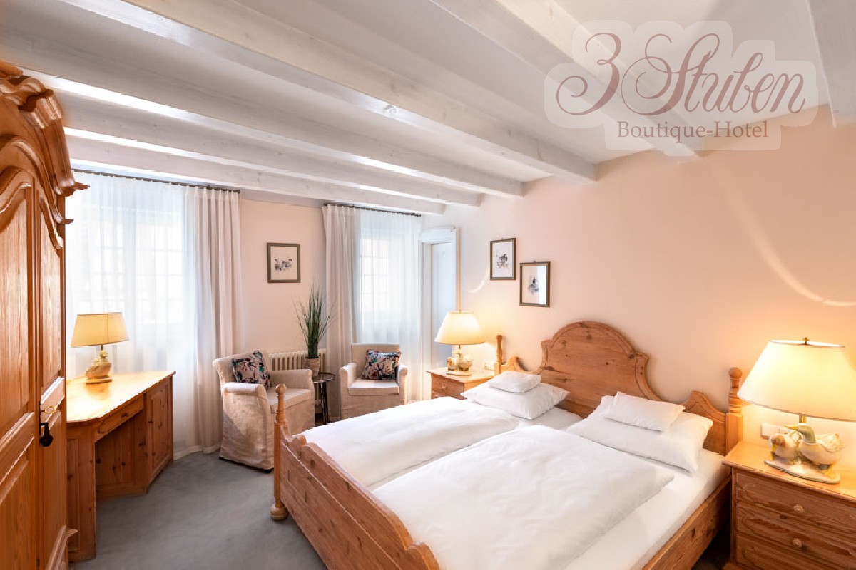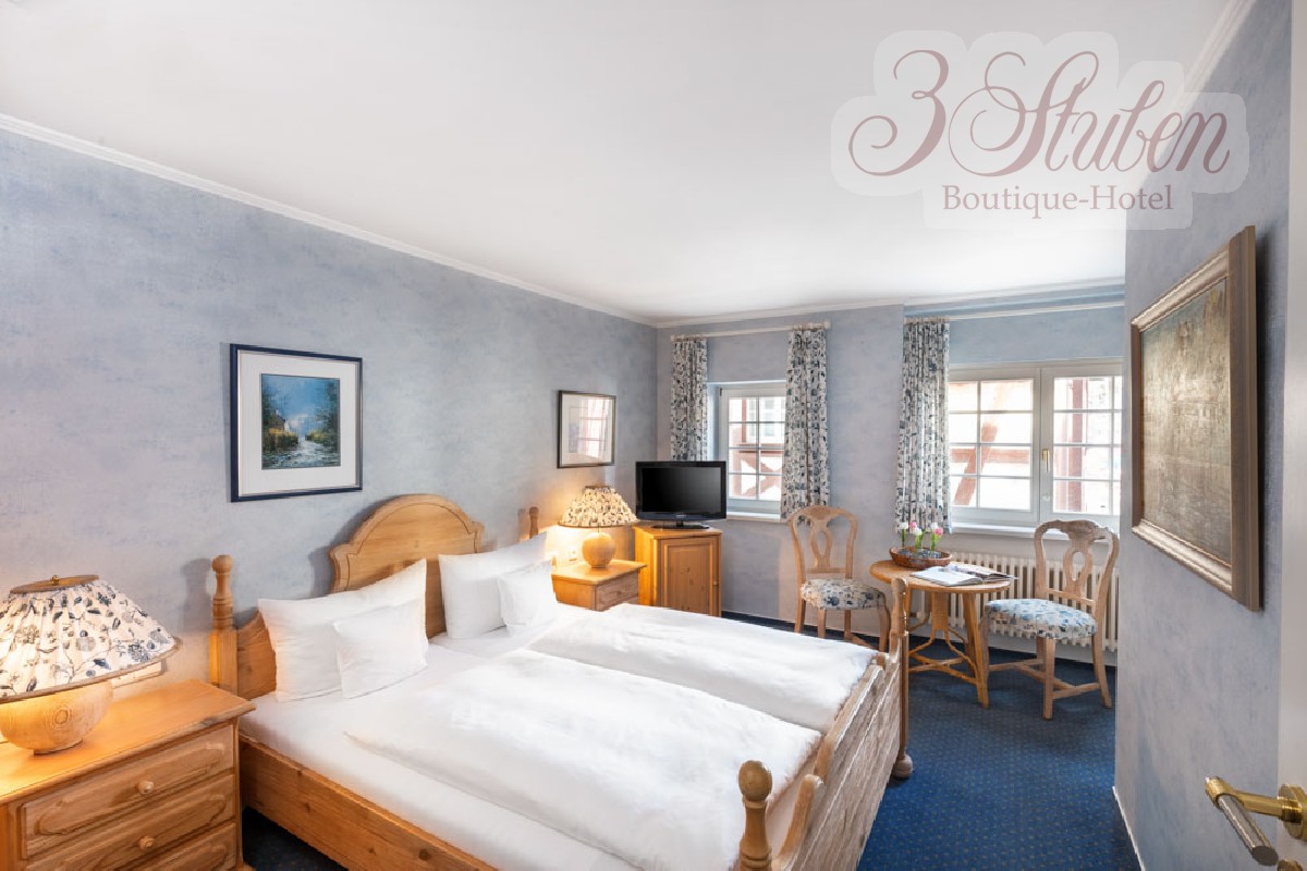 This individually designed Double Bedroom "Comfort" offers more room to relax, a large double bed, cabel TV, a writing desk and comfortable seating.